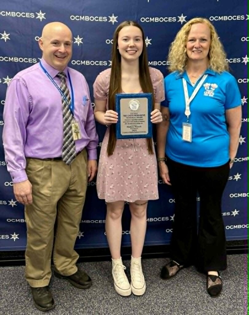 Congratulations to Mallory Wessles from Cicero North Syracuse High School for being selected as the recipient of the Two Chefs From Above Scholarship for 2025. Mallory is a highly focused and mature young lady, and has a real talent and desire for baking and pastry arts. She has worked as a cake decorator at Speara’s Market, and displayed her ability as a cake decorator during the SKILL USA state competition where she finished second. She will take her skills to the prestigious Culinary Institute of America in Hyde Park in the fall.